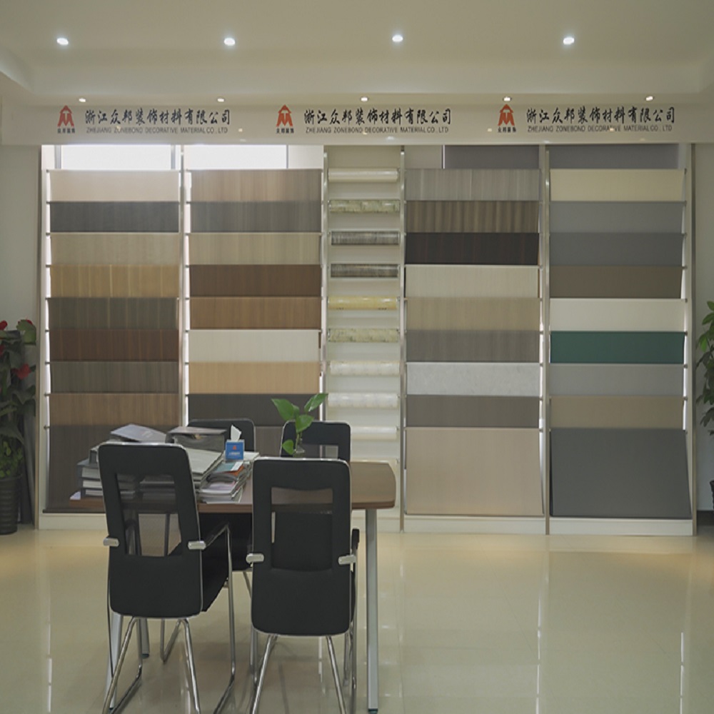 It is located in the beautiful industrial Zhuji city ,ZheJiang province. The total area of Zhongbang is more than 10,000 square meters with several advanced printing producing lines. We have more than 100 workers including the professional design team and sales team .Our main products are decorative PVC film, PETG film and Hot stamping foil. All of the above products which are extensively used in home decoration that can be made into any design with different colors and sizes according to customer's requirements.
